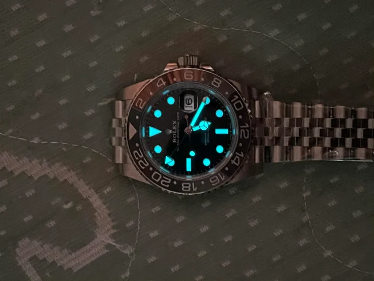 Equipped with a date display and the hallmark GMT hand, the Rolex GMT Master II “Bruce Wayne” is designed for practicality as well as style. With water resistance up to 100 meters, this timepiece is built to endure a variety of conditions, making it ideal for both travel and daily wear.